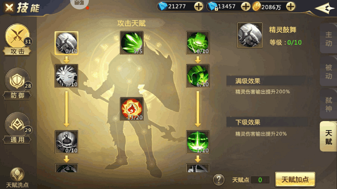 按照上面的天赋进行加点,在这里的攻击系的精灵系天赋点满,还有致命毒矢和圣器精通,可以提升大量的输出效果。在这里的输出伤害是必须要点的。玩家可以激活大量的攻击天赋,有着必备的超高输出伤害提升,适合用来刷图的,效果是很不错的。
