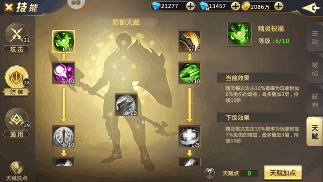 防御系:精灵祝福前置,迅捷步法6点,身轻如燕,虚空漫步满,妙手回春,嗜血连击(必满)